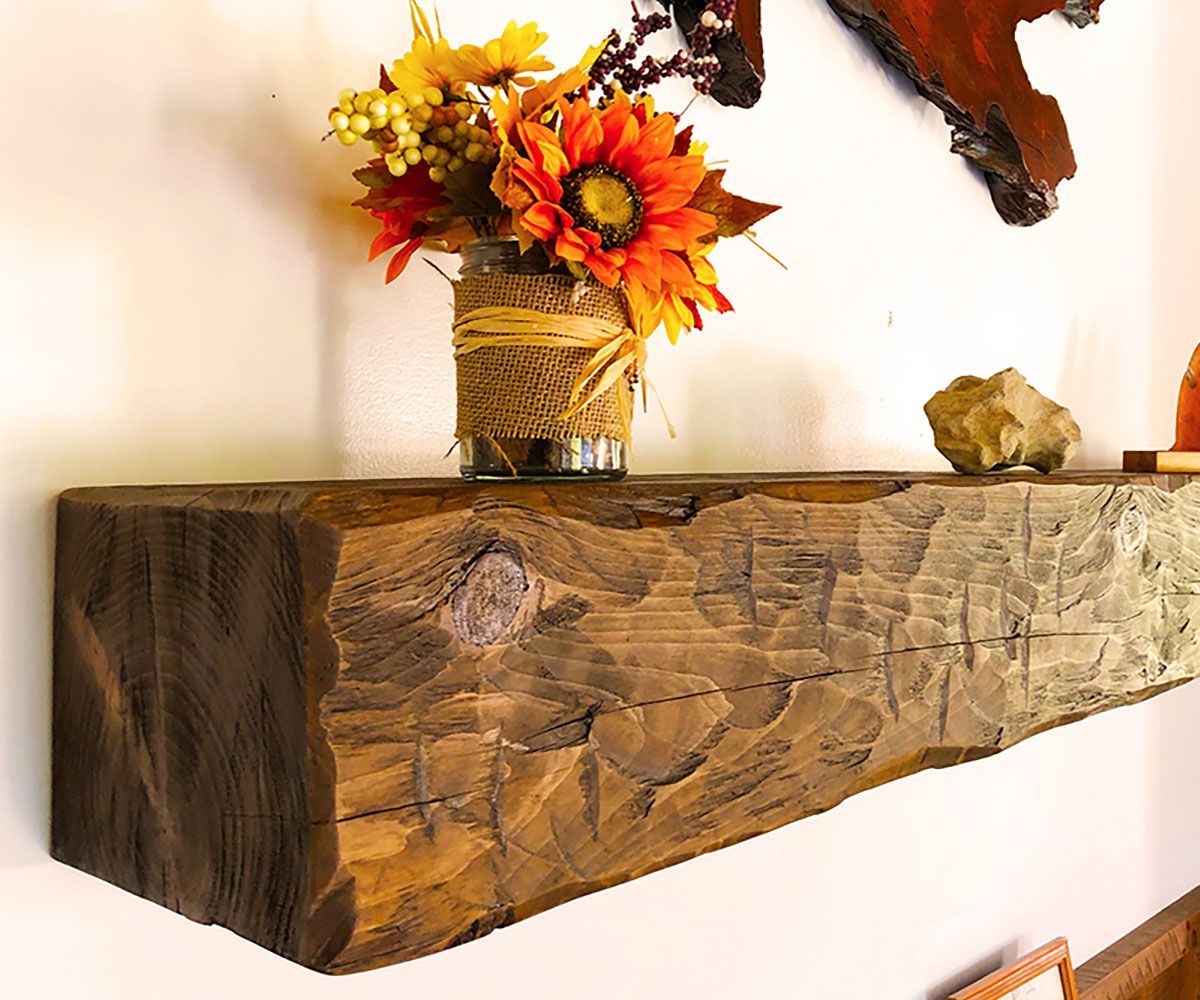 Hand-hewn by Amish craftsmen and old world techniques, our Barnwood Collection features real timber wood fireplace mantels, floating shelves, corbels, and box beam covers that will add character and an exquisite look to any home. Their antique charm is magnified by their checks and cracks that happen naturally during the hewing process, making each one truly unique and custom.